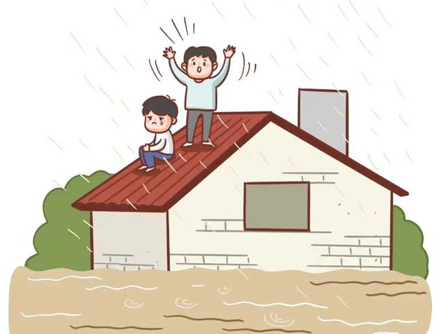 無論是孤身一人還是聚集人群突遭洪水圍困于基礎較牢固的高地或磚混結構的住宅樓房時,只要有序固守等待求援或等待陡漲陡落的洪水消退后即可解圍。如遭洪水圍困于低洼處的溪岸、土坯或木結構的住房里,情況危急時(泥石流另述),有通訊條件的,可利用通訊工具向當?shù)卣头姥床块T報告洪水態(tài)勢和受困情況,尋求救援;無通訊條件的,可制造煙火或來回揮動顏色鮮艷的衣物或集體同聲呼救,不斷向外界發(fā)出緊急求助信號,求得盡早解救;同時要尋找體積較大的漂浮物,主動采取自救措施。